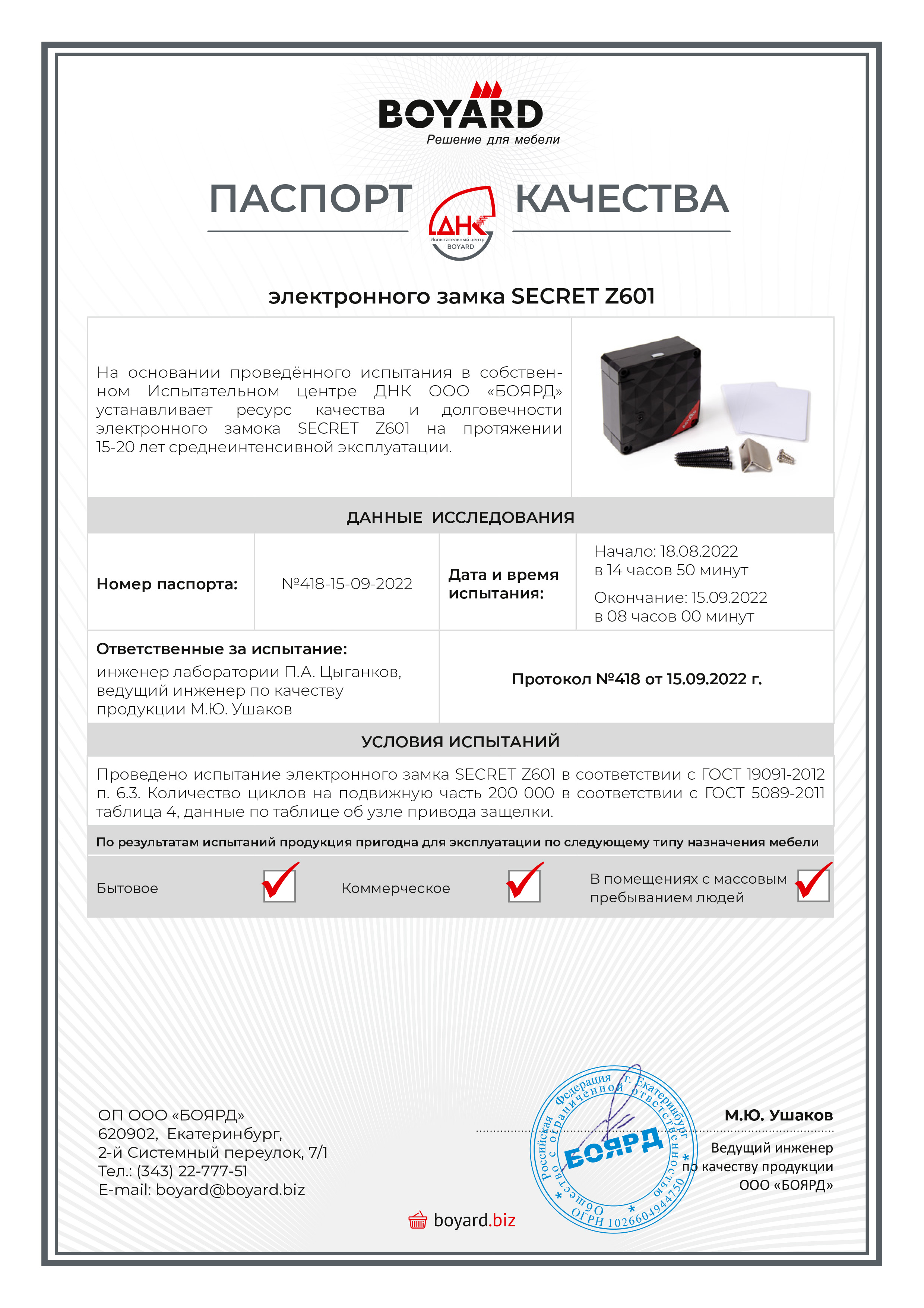Дополнительная ключ-карта для электронного замка SECRET Z601 KL01.W